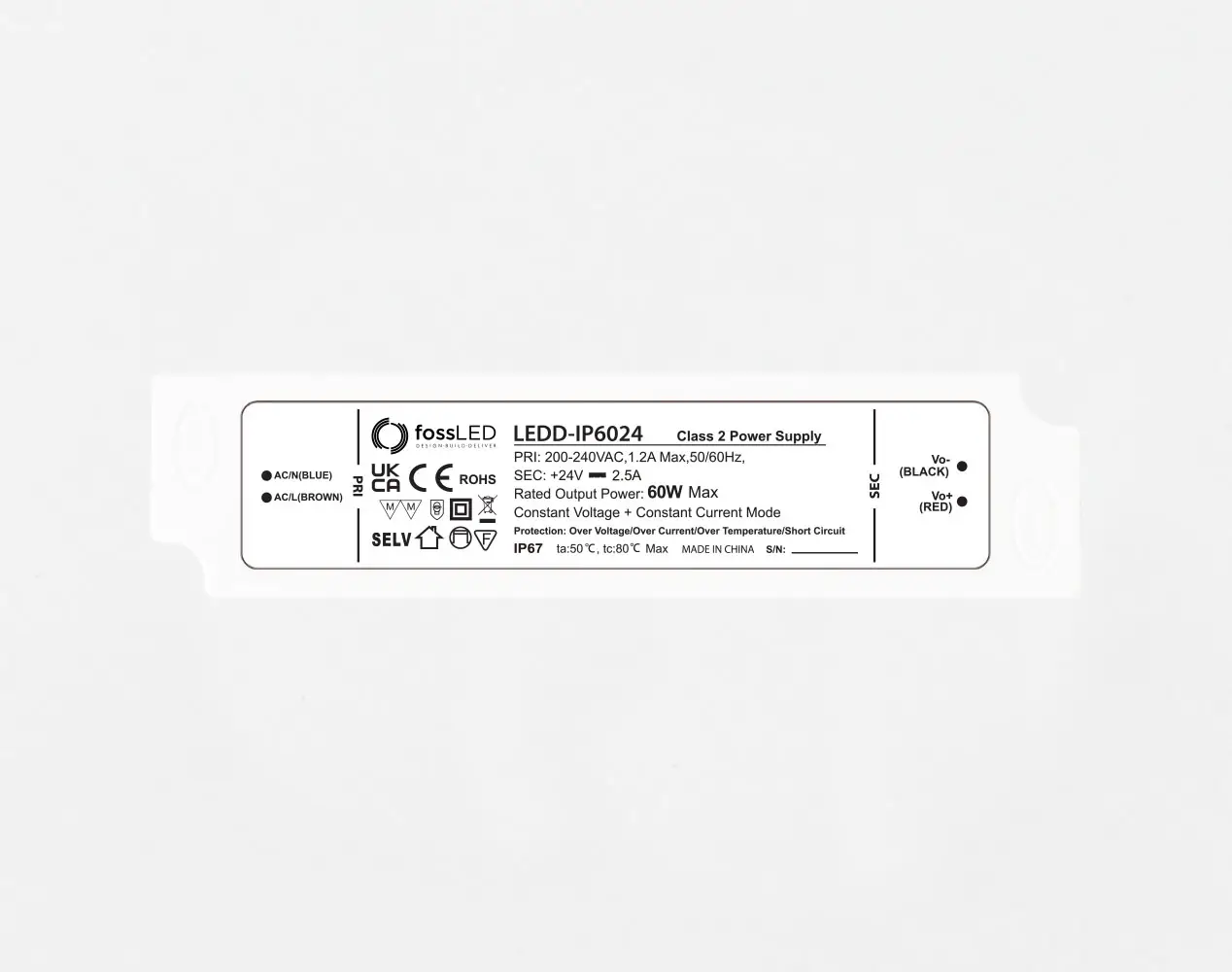 LEDD-IP6024 – FossLED 60W 24V Non-Dimmable Constant Voltage LED Driver